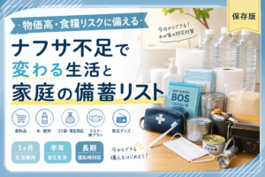 いざ災害や、買い占めが起こってからでは手に入りにくいため、普段からの防災意識が大切です。