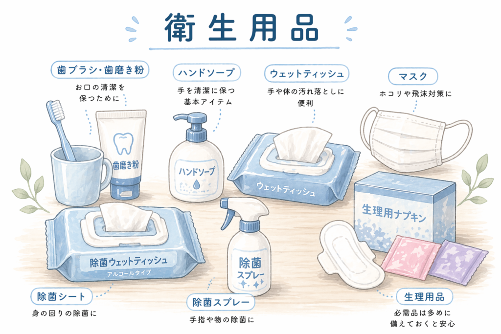 衛生状態を悪化させないためにも各自で優先的に準備しましょう