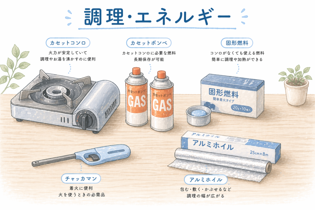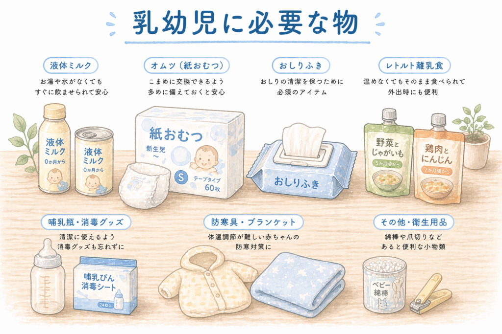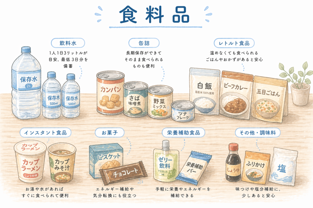 - 食料:最低3日分(理想1週間)