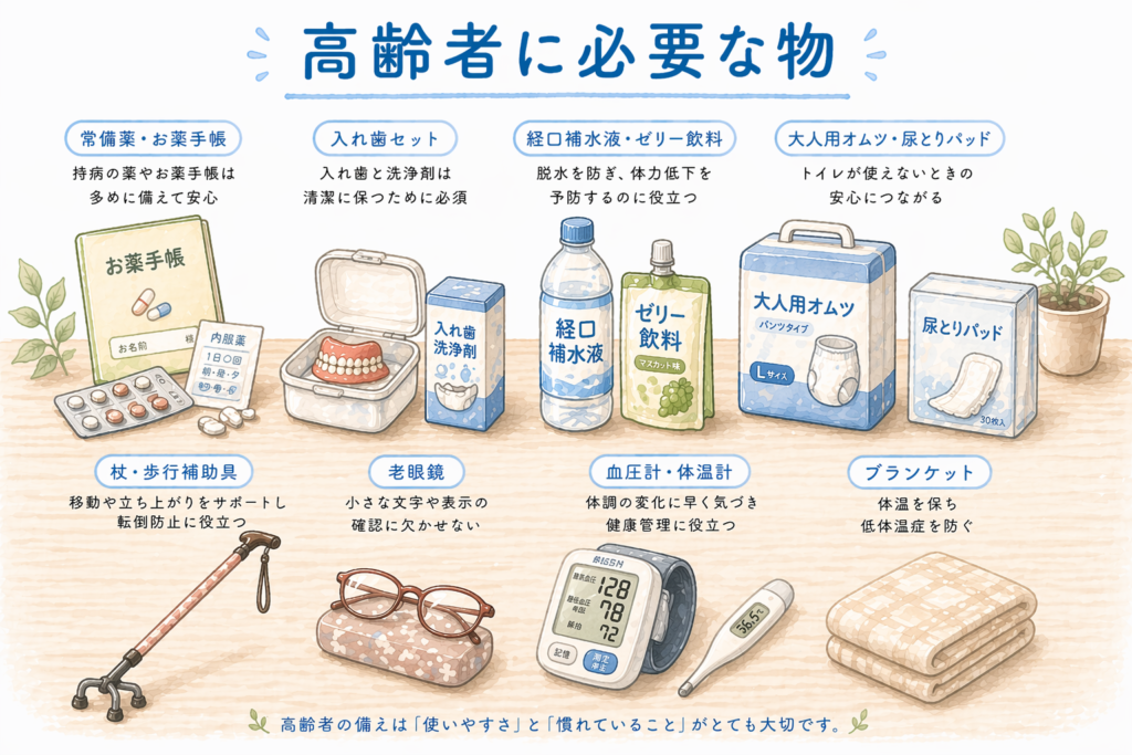- 地域指定ゴミ袋:あらゆる事態を想定して、多めに持っておくと安心